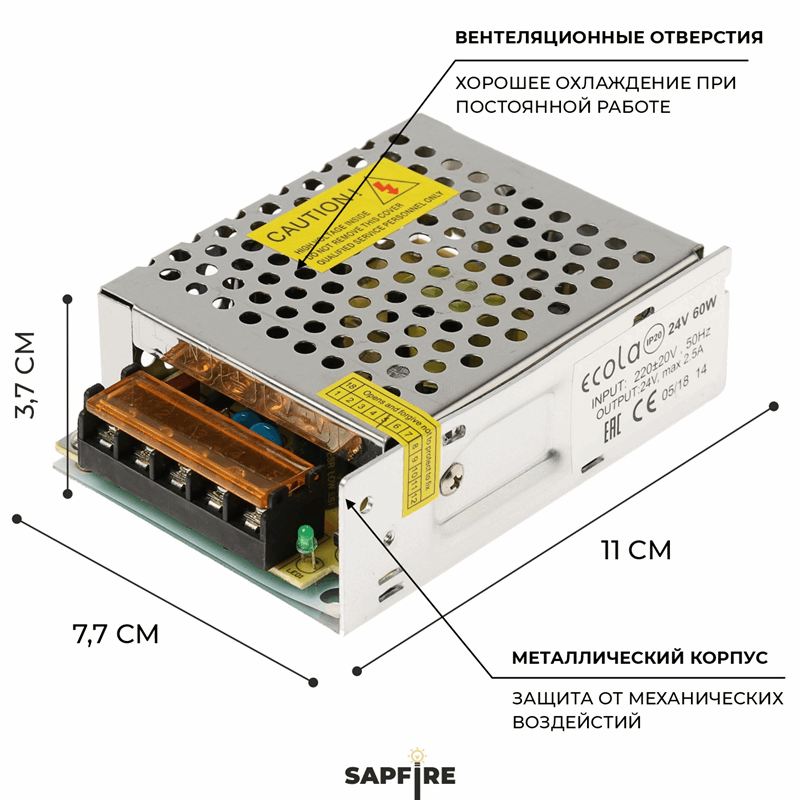 Ecola LED strip Power Supply 60W 220V-24V IP20 блок питания для светодиодной ленты
