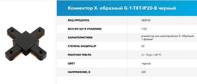 Коннектор для шинопровода - образный 1-фазный G-1-TT-IP20-B черный GNRL RSP